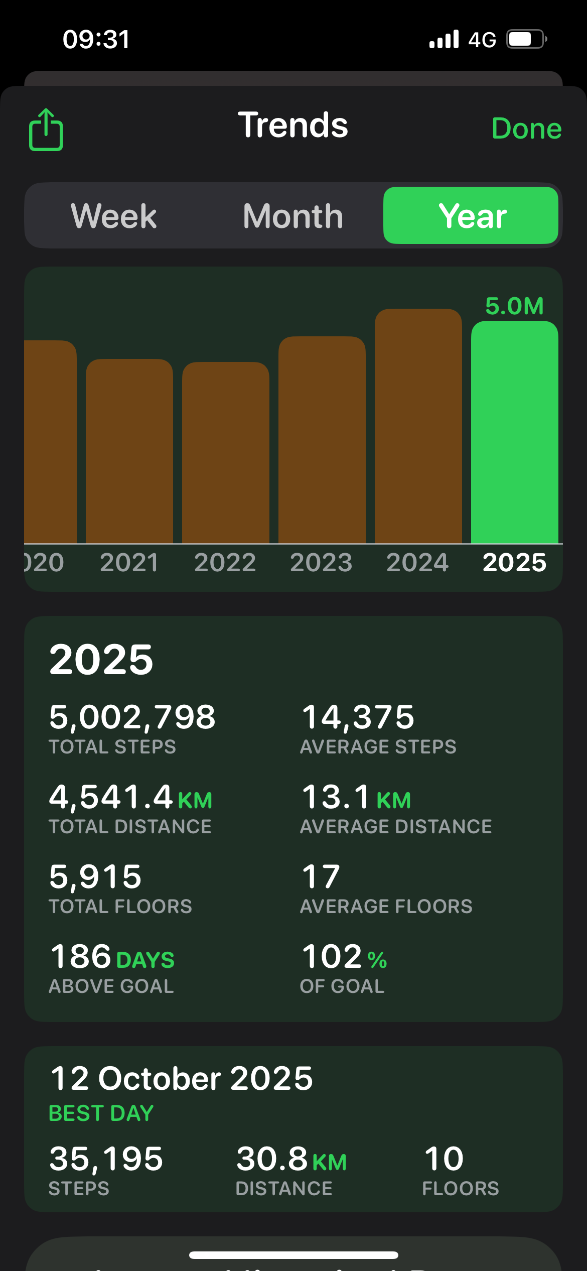 I wanted something of the same magnitude. And last year I realised that around 14,000 steps a day will get you to 5,000,000 steps a year. Which sounds like a lot. An impressive thing to aim for. So that's what I've been doing.